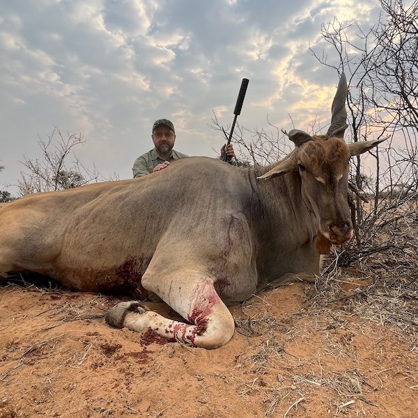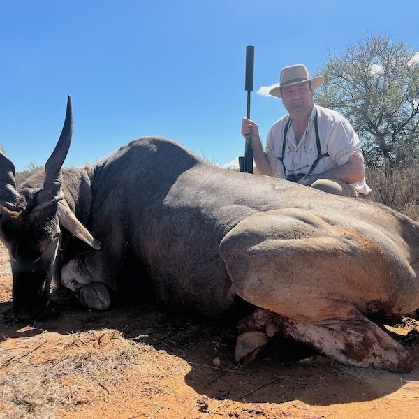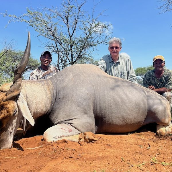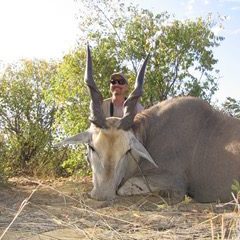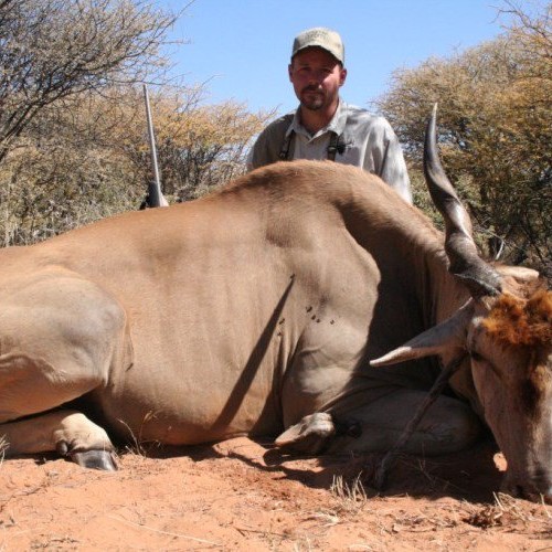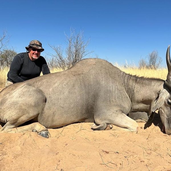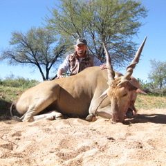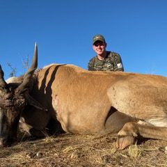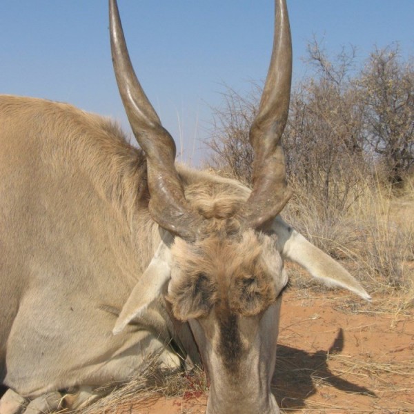 Common elands are spiral-horned antelopes. They are sexually dimorphic, with females being smaller than the males.Females weigh 300–600 kg (660–1,300 lb), measure 200–280 cm (79–110 in) from the snout to the base of the tail and stand 125–153 cm (49–60 in) at the shoulder. Bulls weigh 400–942 kg (880–2,077 lb), are 240–345 cm (94–136 in) from the snout to the base of the tail and stand 150–183 cm (59–72 in) at the shoulder. The tail is 50–90 cm (20–35 in) long. Male elands can weigh up to 1,000 kg (2,200 lb)