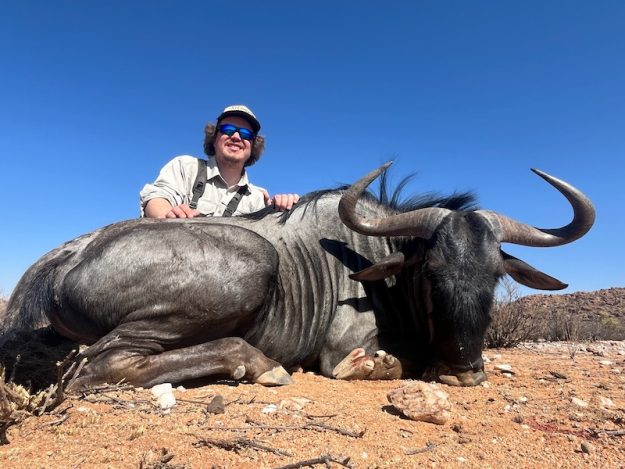The black wildebeest has a dark brown or black coat which is slightly paler in summer and coarser and shaggier in the winter.
