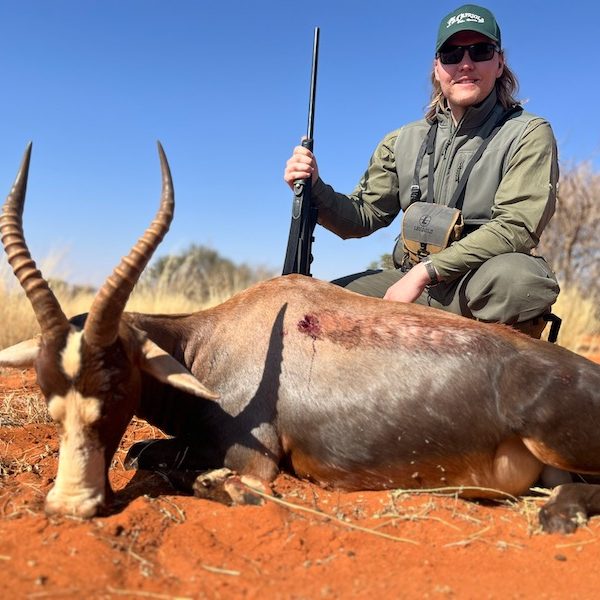 Commonly known as the red hartebeest, it is the most colorful hartbeest, with black markings contrasting against its white abdomen and behind.